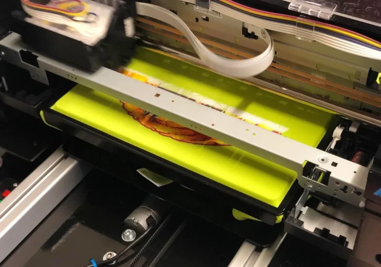 The design is processed through software and printed directly onto the garment using water-based inks. It works best on cotton fabrics, where the ink can fully absorb.